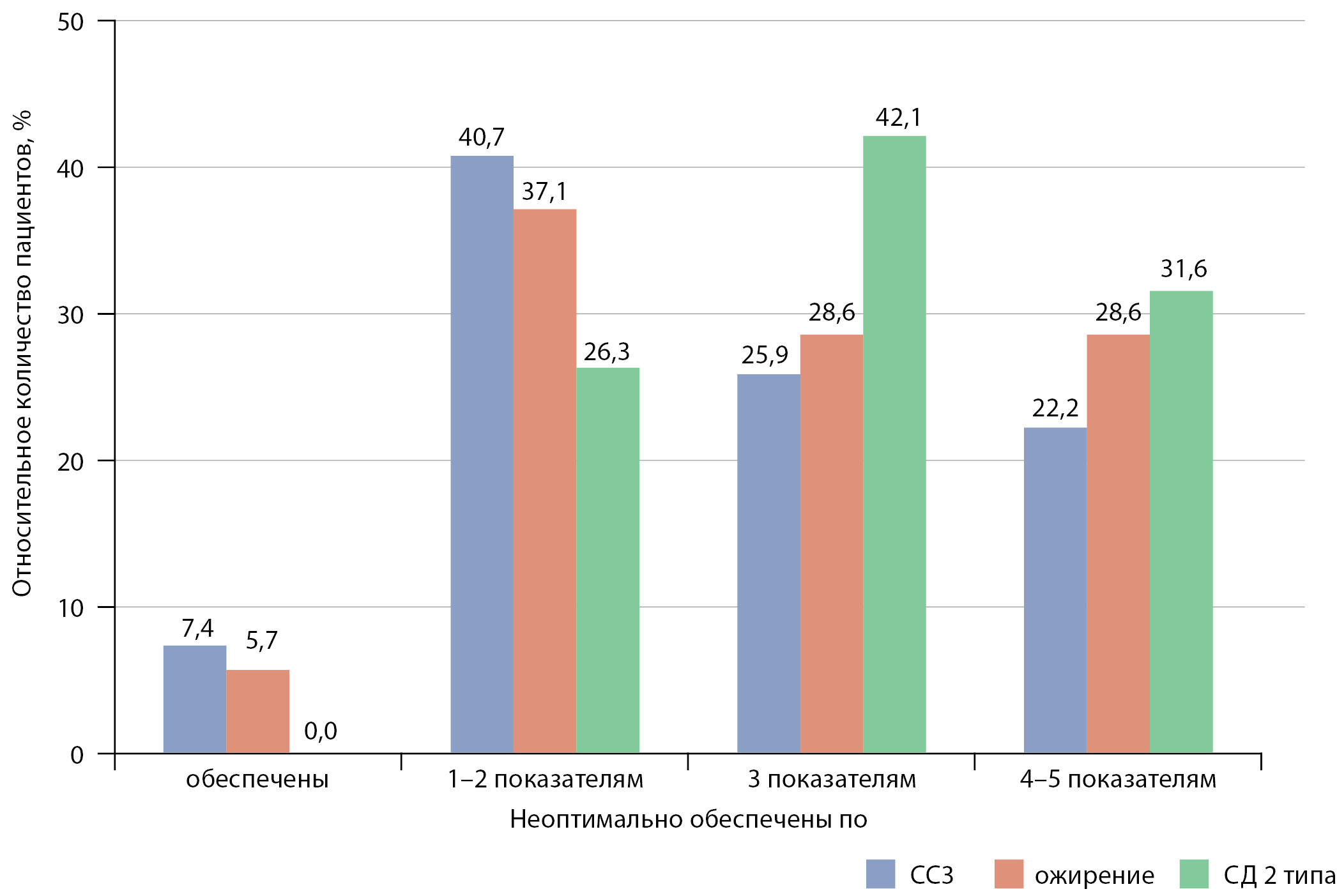 1. Рисунок 1. Количество пациентов с показателями, не достигающими оптимальных величин. | |