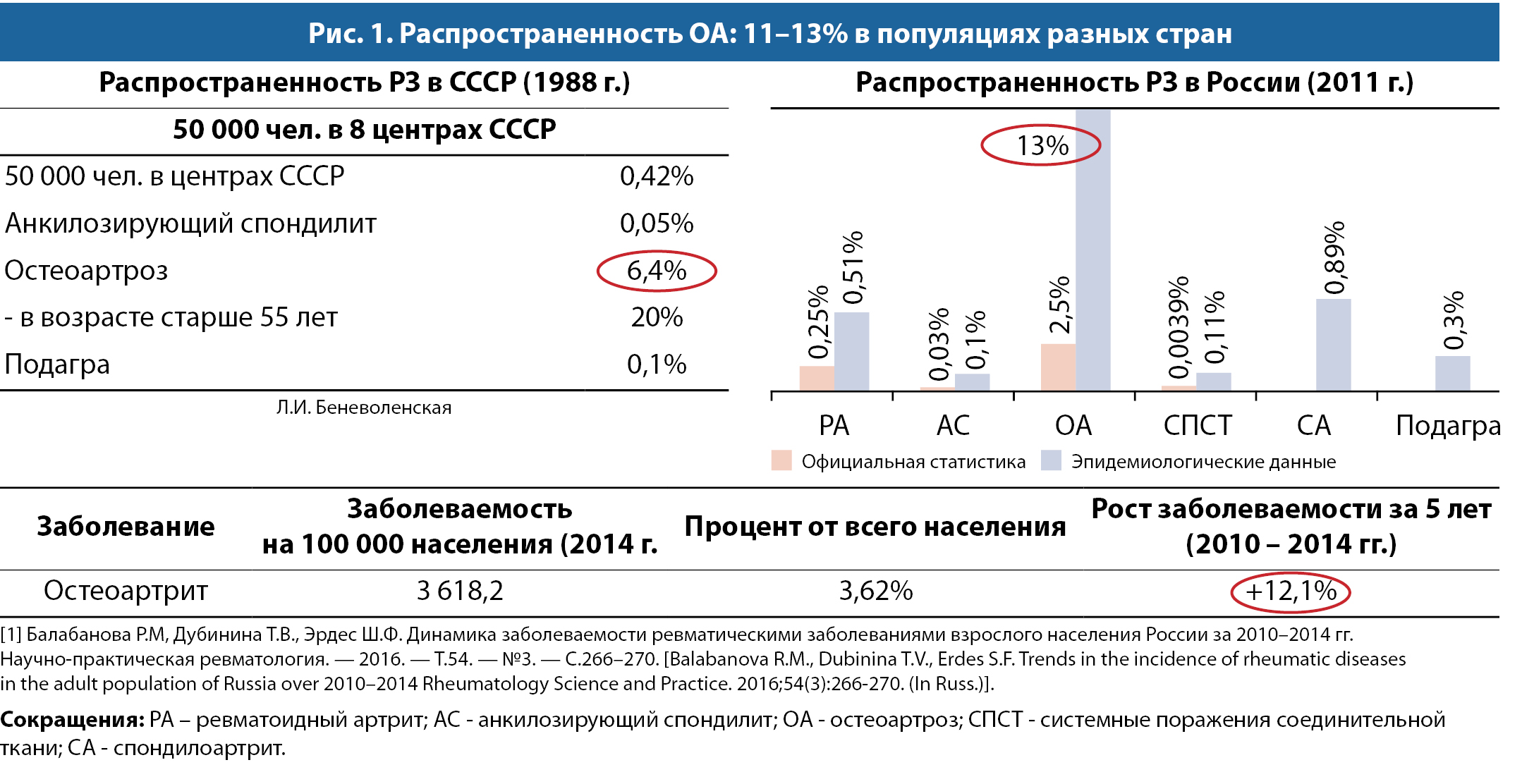 1. Fig. 1. The prevalence of OA: 11–13% in populations of different countries | |