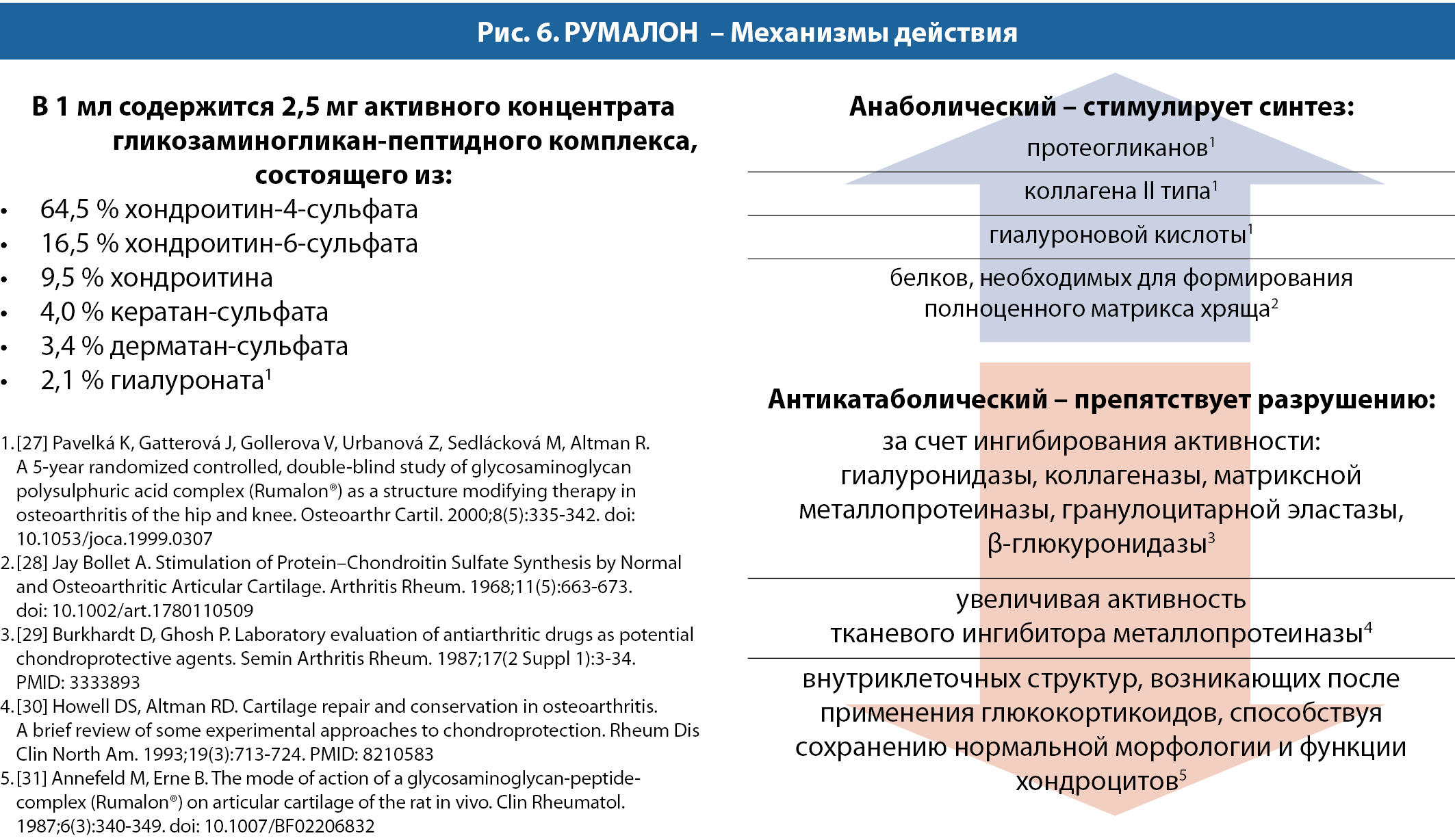 31. Annefeld M, Erne B. The mode of action of a glycosaminoglycan-peptide-complex (Rumalon®) on articular cartilage of the rat in vivo. Clin Rheumatol. 1987;6(3):340-349. doi: 10.1007/BF02206832