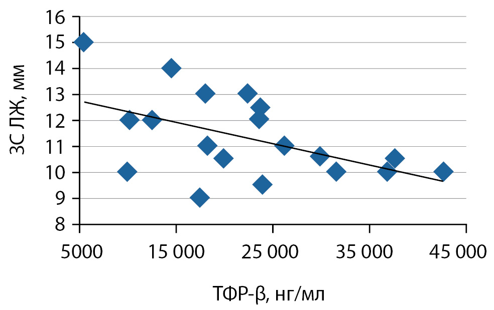 3. Figure 3. The ratio of transforming growth factor beta (TGF-β) and the thickness of the posterior wall of the left ventricle (LV LV) | |
