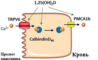 Аббревиатуры: TRPV6 – кальциевый канал; PMCA1b – кальций-транспортирующая АТФаза плазматической мембраны типа 1b