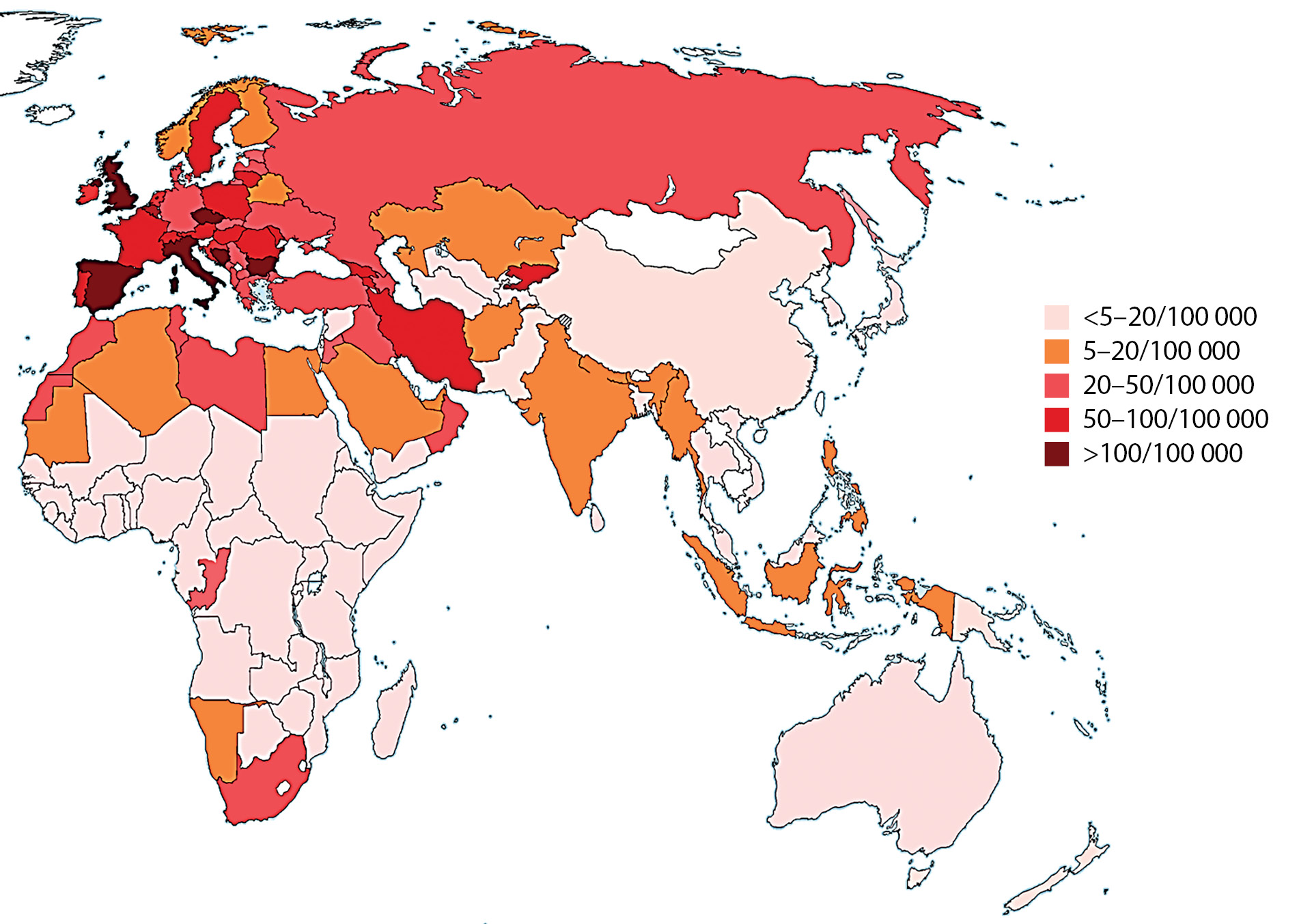 Рисунок 1. Смертность от COVID-19 на 100 000 населения. *