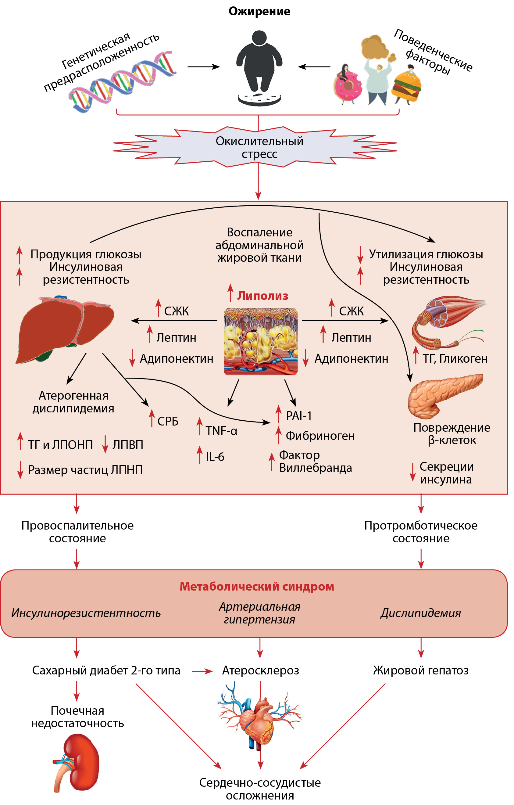 Рисунок 1. Схема патогенеза метаболического синдрома (адаптировано из [13]).