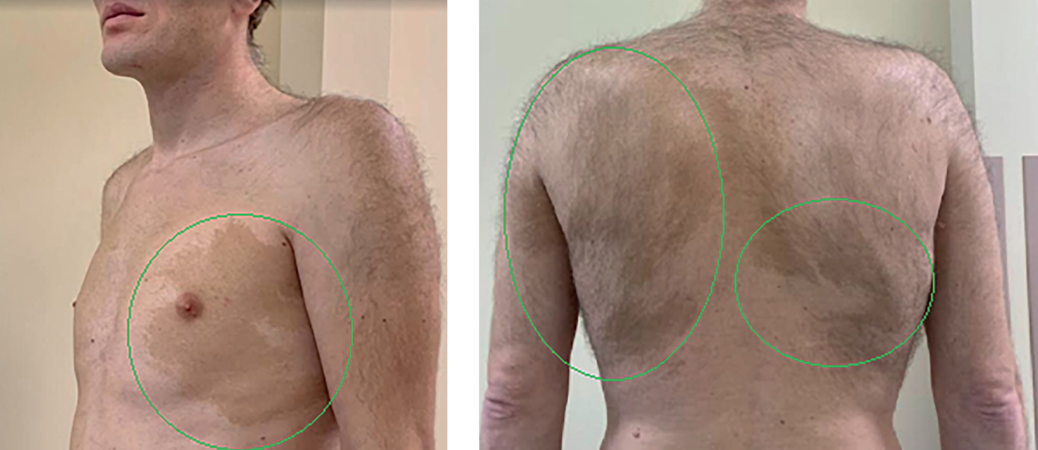 4. Figure 4. Pigmented spots («cafe au lai macule») of a patient with McCune-Albright–Braitsev syndrome.