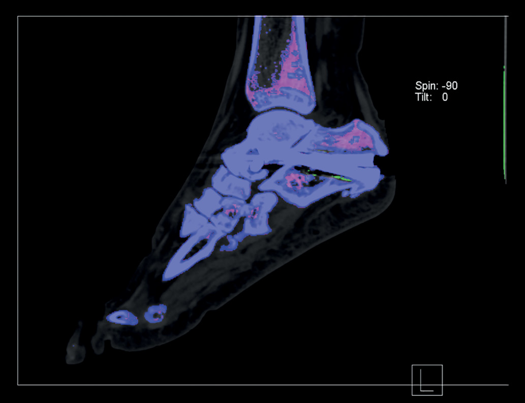 Figure 1. Dual-energy computed tomography of the feet of patient S.