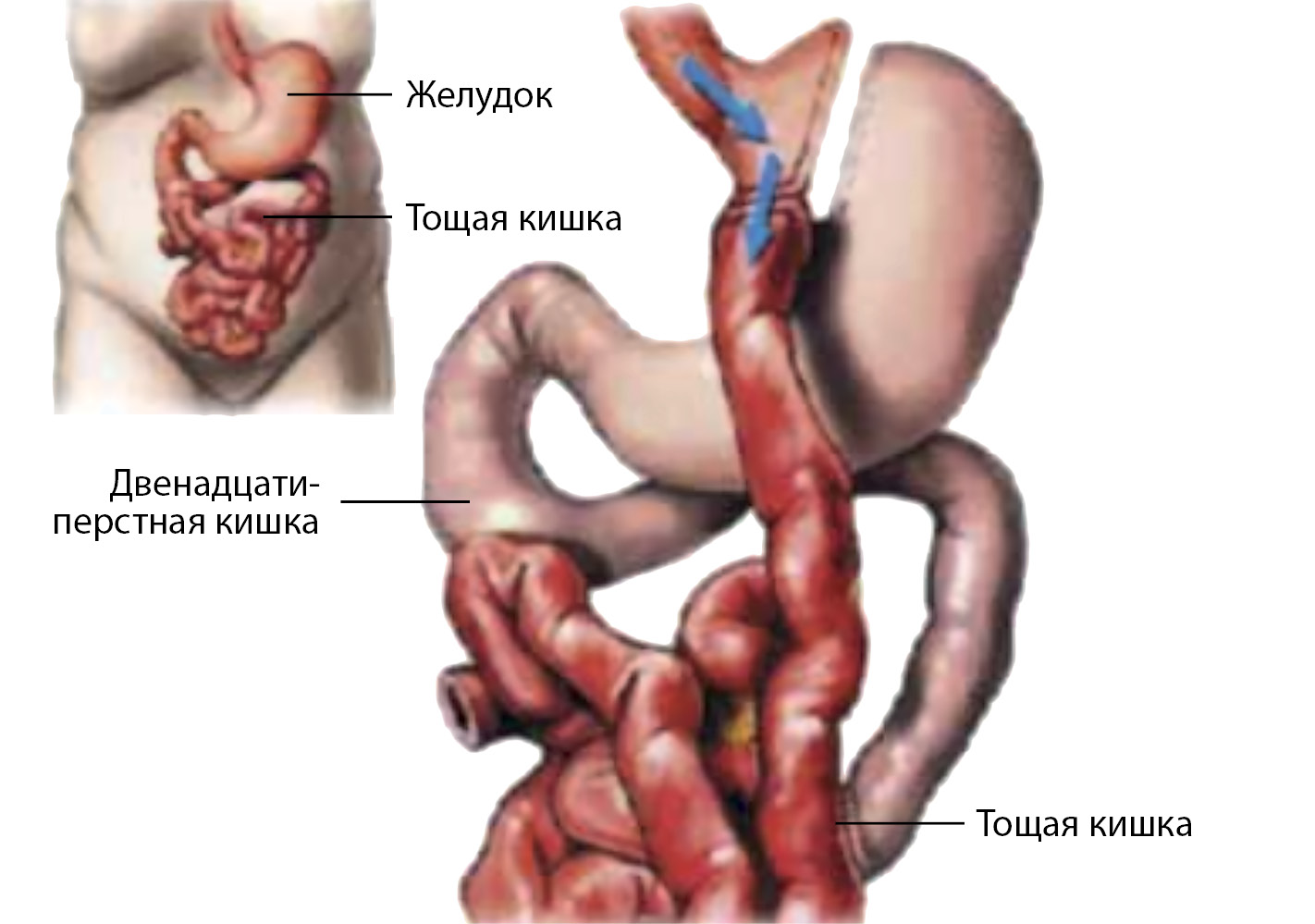 Figure 1. Gastric bypass surgery (adapted from Use of bariatric surgery in patients with type 2 diabetes: help to the practitioner Ershova E.V., Troshina E.A.).