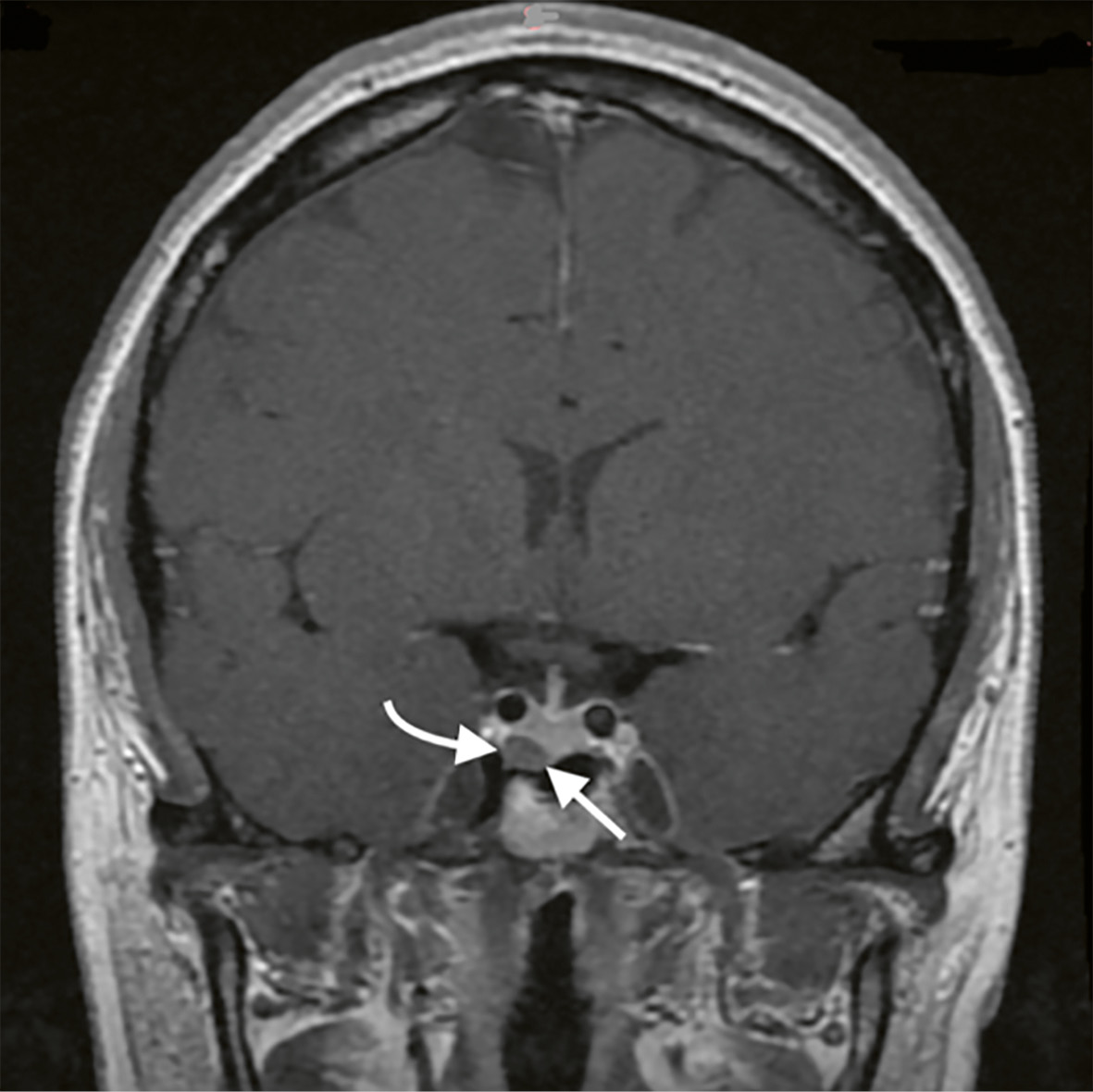 В нашем примере отсутствие эффективного снижения веса на фоне неоднократных попыток немедикаментозного лечения, а также возникновение головных болей и репродуктивных нарушений позволили своевременно заподозрить и диагностировать гормонально-активную аденому гипофиза.
