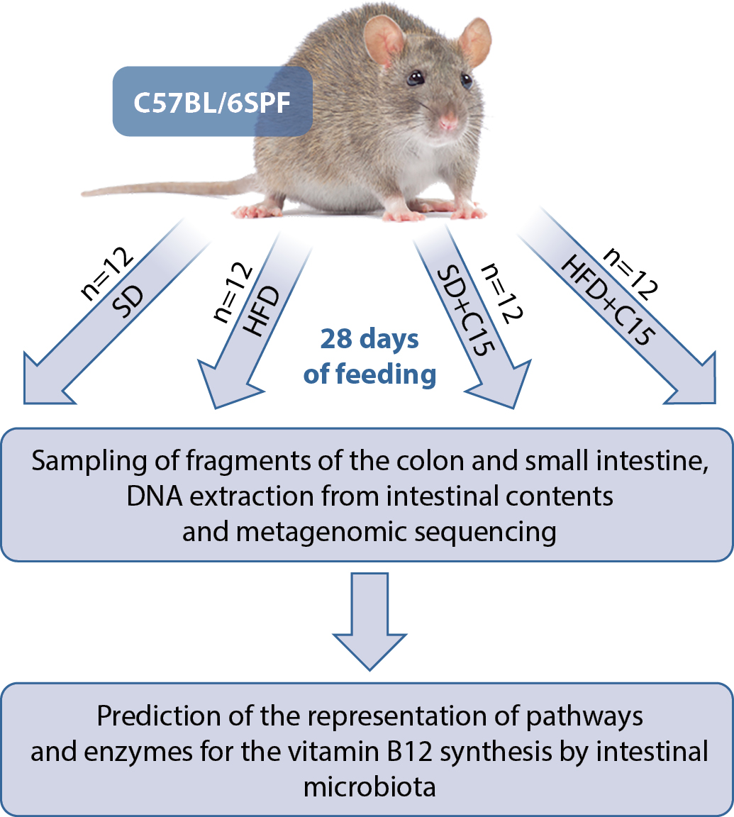 11. Zabolotneva AA, Kolesnikova IM, Vasiliev IYu, Grigoryeva TV, Roumiantsev SA, Shestopalov AV. The Obesogenic Gut Microbiota as a Crucial Factor Defining the Depletion of Predicted Enzyme Abundance for Vitamin B12 Synthesis in the Mouse Intestine. Biomedicines. 2024;12:1280. doi: https://doi.org/10.3390/biomedicines12061280