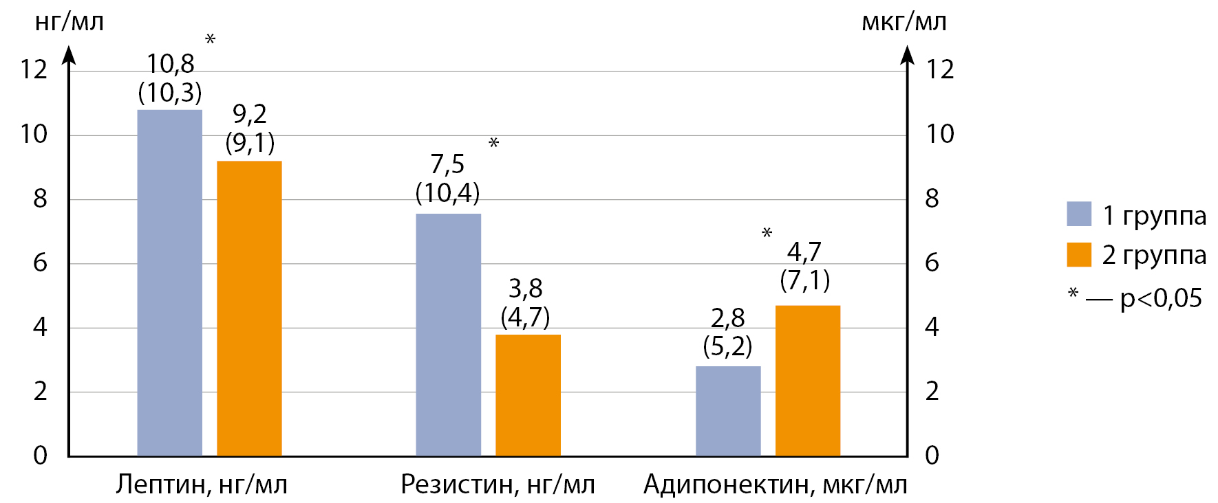 Рисунок 2. Содержание адипогормонов.