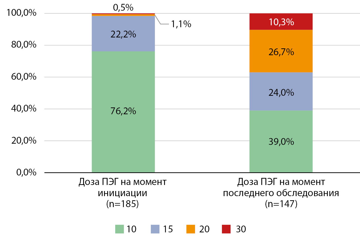 3. Рисунок 3. Дозы ПЭГ, которые получали включенные в исследование пациенты. | |