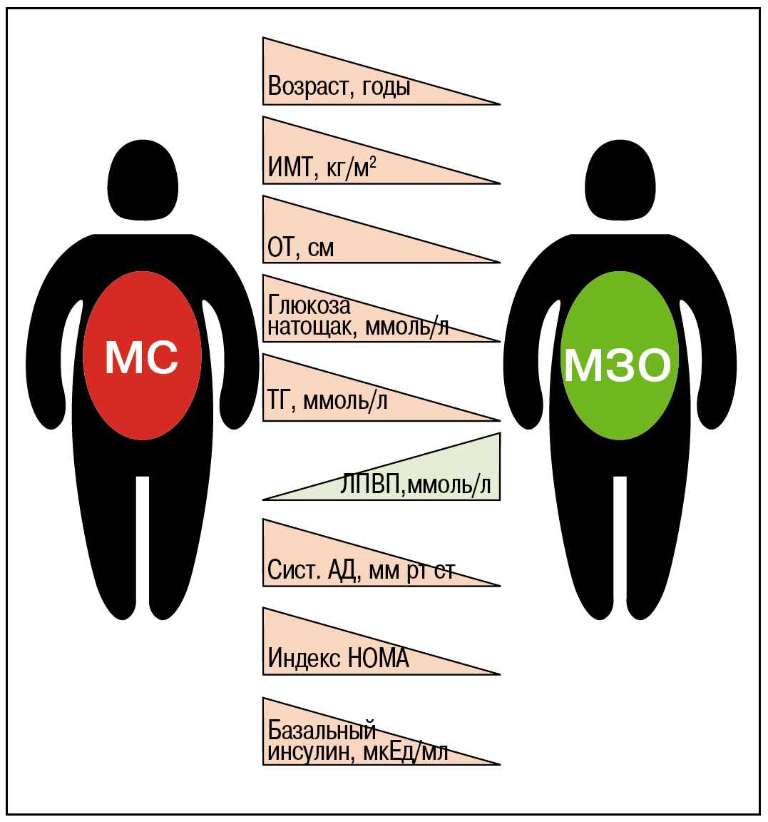Цель работы. Определение распространенности МЗО, изучение особенностей данного фенотипа в сравнении с метаболическим синдромом (МС).