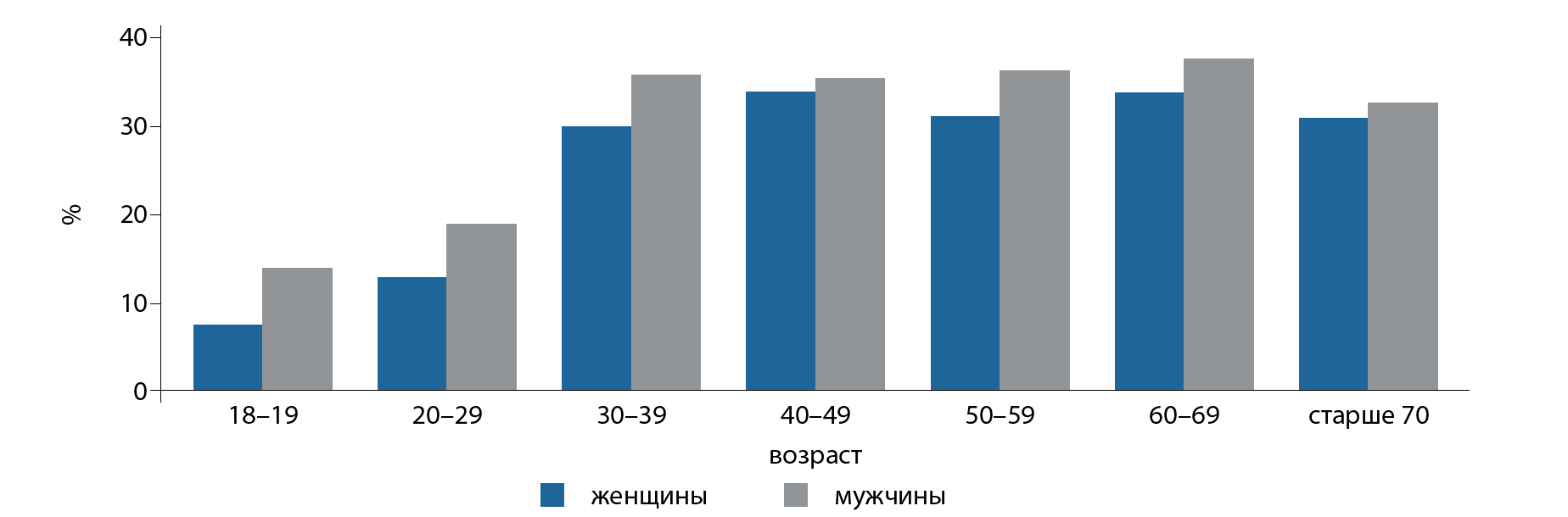 Рис. 1. Половозрастная распространенность избыточной массы тела