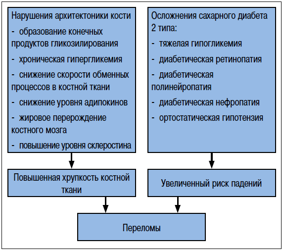 Рис. 3. Механизмы, приводящие к повышенному риску переломов при СД2.