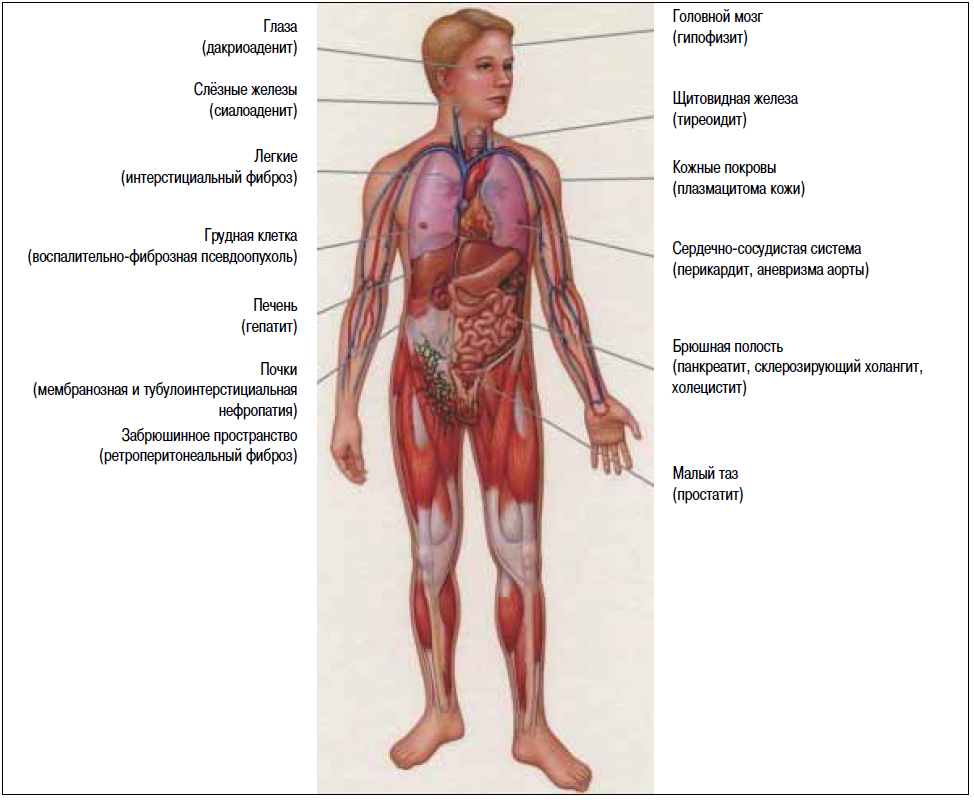 Рис. 1. Органы-мишени инфильтрации иммуноглобулин-G4-положительными плазматическими клетками.