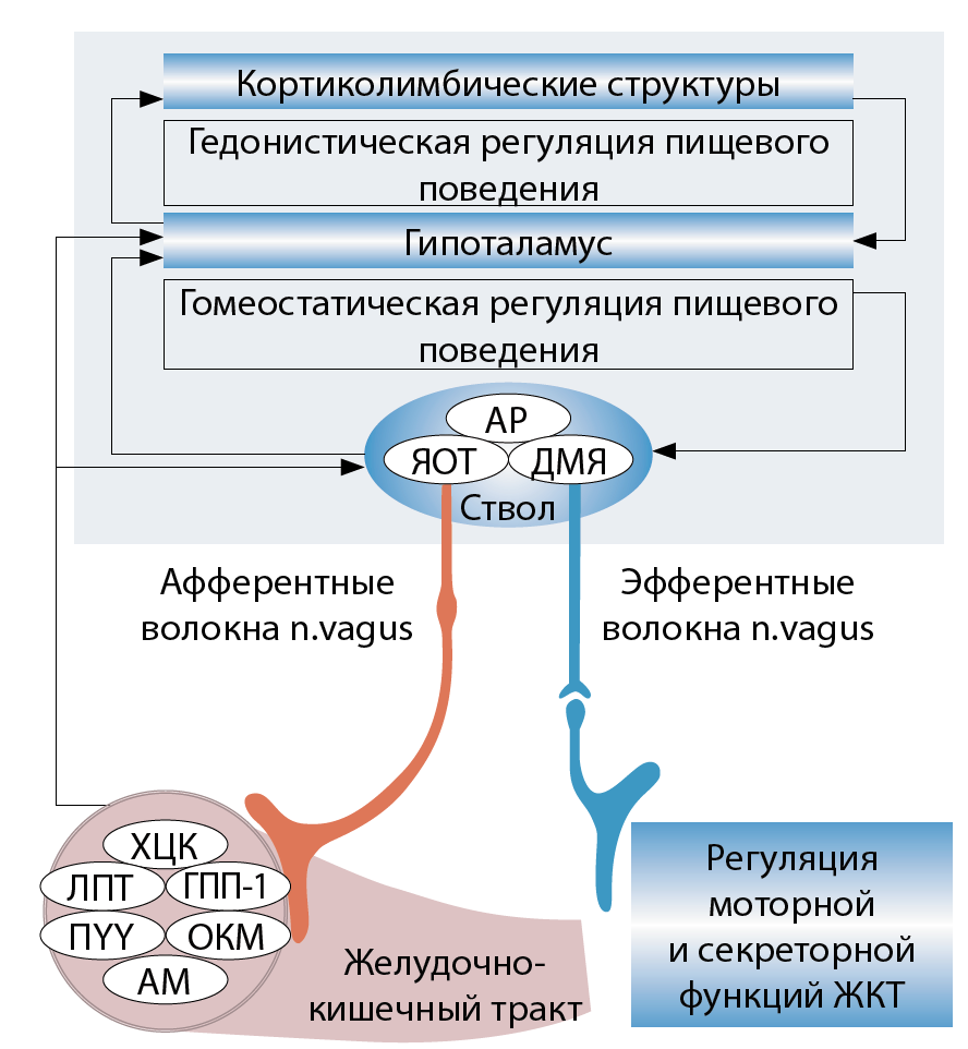 4. Fig. 1. The role of the vagus nerve in the realization of the effects of GLP-1 and other hormones of the gastrointestinal tract (adapted from the work of VA Pavlov et al., 2012). | |