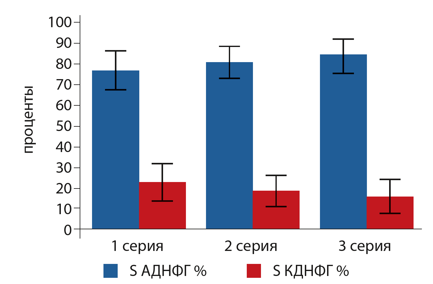 7. Рис. 7. Доля суммарного количества АДНФГ и КДНФГ- относительно общего содержания карбонильных производных белков | |